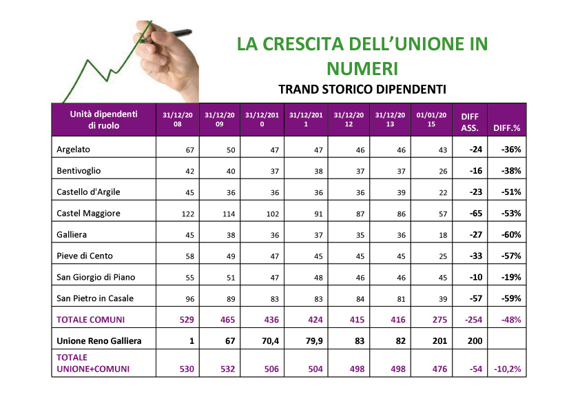 I numeri dell'unione a un anno dal conferimento dei servizi alla persona (luglio 2014 - settembre 2015)