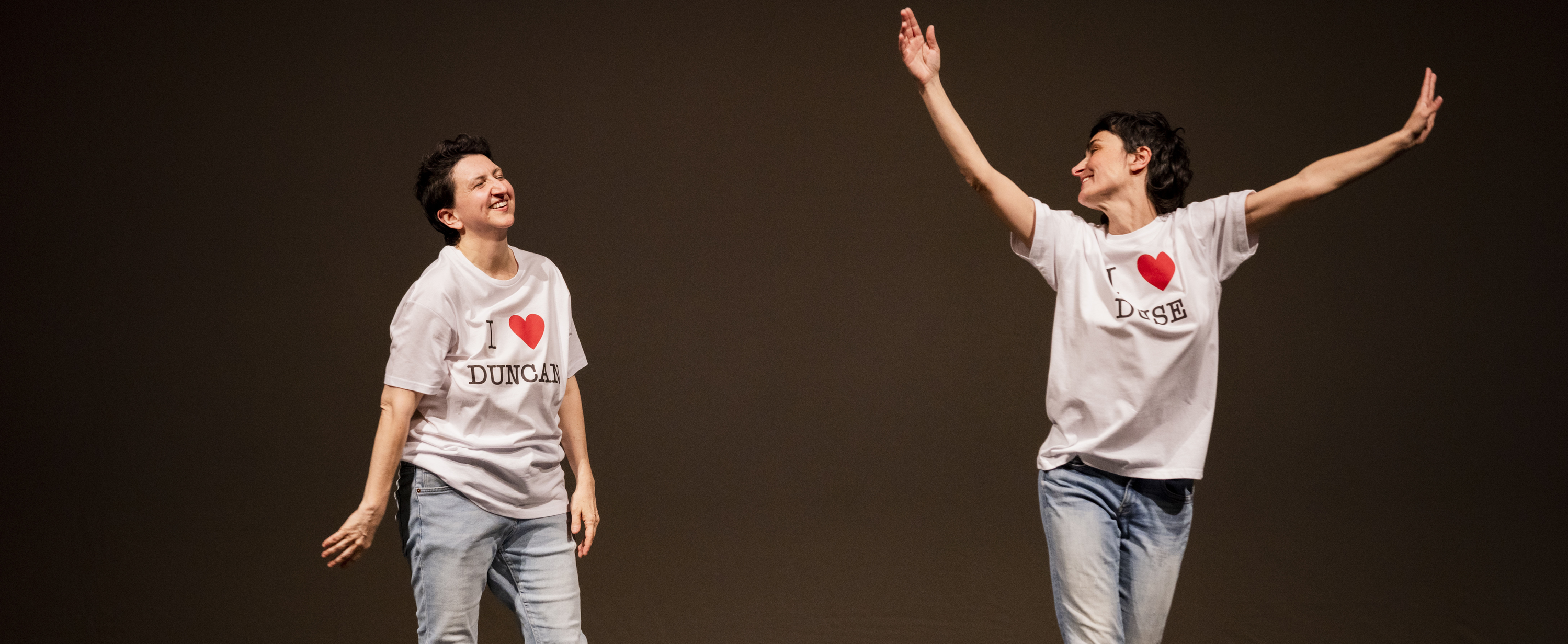 “Essere doozy significa essere stupefacenti, fuori dall’ordinario, così particolari da lasciare a bocca aperta. Eccezionalmente bravi o eccezionalmente pessimi, in parole semplici: strambi. Esserlo o non esserlo? Esserlo, perché, secondo noi, è un complimento. Con questa convinzione nel cuore ci siamo dedicate all’ideazione e alla creazione di uno spettacolo difficile da etichettare, ispirato alla rivoluzione artistica e umana di due eroine che hanno vissuto per e nella danza, per e nel teatro. Le biografie di Isadora Duncan e di Eleonora Duse sono un’appassionante fucina di spunti narrativi e politici. Attraverso il loro esistere anticonvenzionale sono state pioniere del femminismo, del capocomicato, di un’arte che si preoccupi del presente. Queste Doozies senza trucco, senza punte, giudicate spesso fisicamente non conformi ai canoni estetici del loro tempo, grazie alla loro naturale originalità hanno generato stupore e meraviglia lasciando immense eredità per le generazioni future. The Doozies vuole essere un’opera intorno alla meraviglia della stranezza. Siamo convinte che le nostre stupefacenti antenate avrebbero apprezzato questa sfacciataggine visto che si sono continuamente schierate contro lo status quo anche quando era classico e mitico”.