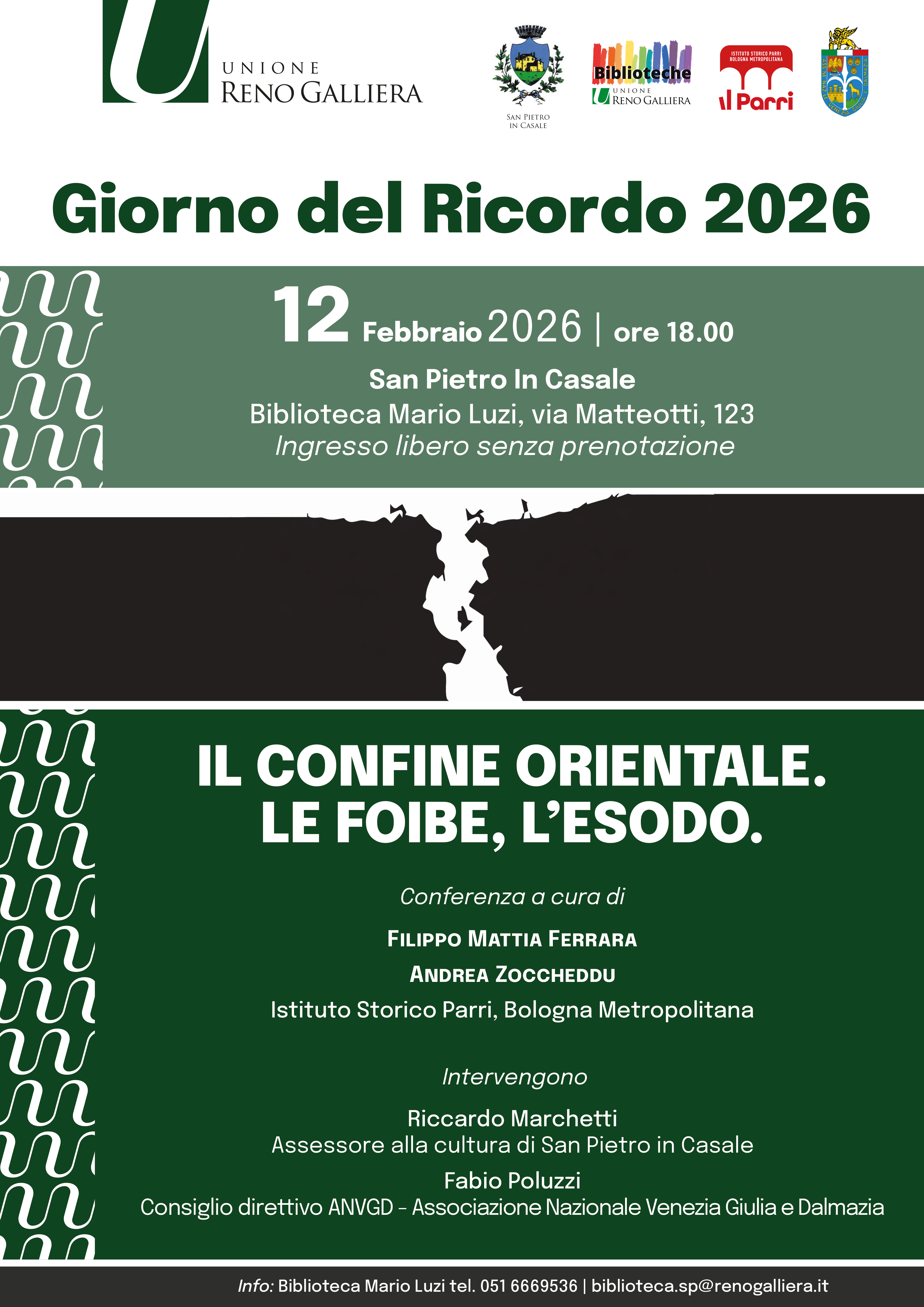 In occasione del Giorno del Ricordo 2026, celebrato il 10 febbraio di ogni anno per ricordare i massacri delle foibe e all'esodo giuliano dalmata del secondo dopoguerra, l’Unione promuove la conferenza: