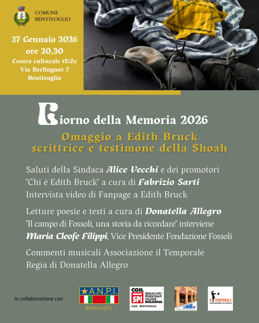 In occasione del Giorno della Memoria, il Comune di Bentivoglio organizza un appuntamento dedicato alla figura di Edith Bruck, sopravvissuta alla deportazione e voce preziosa della memoria.