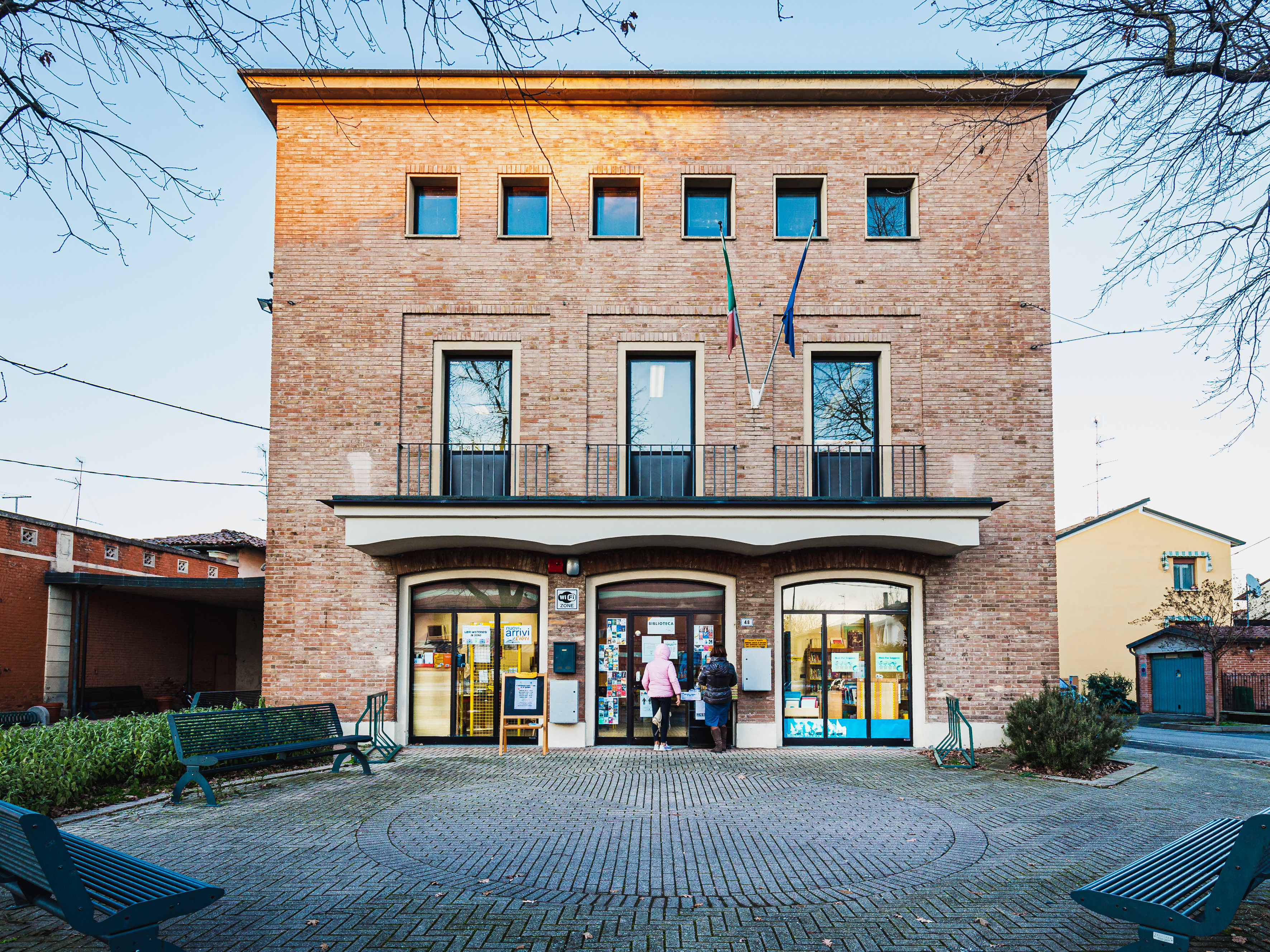 La biblioteca si trova in una eleganante palazzina su tre piani, adiacente al Teatro Comunale.