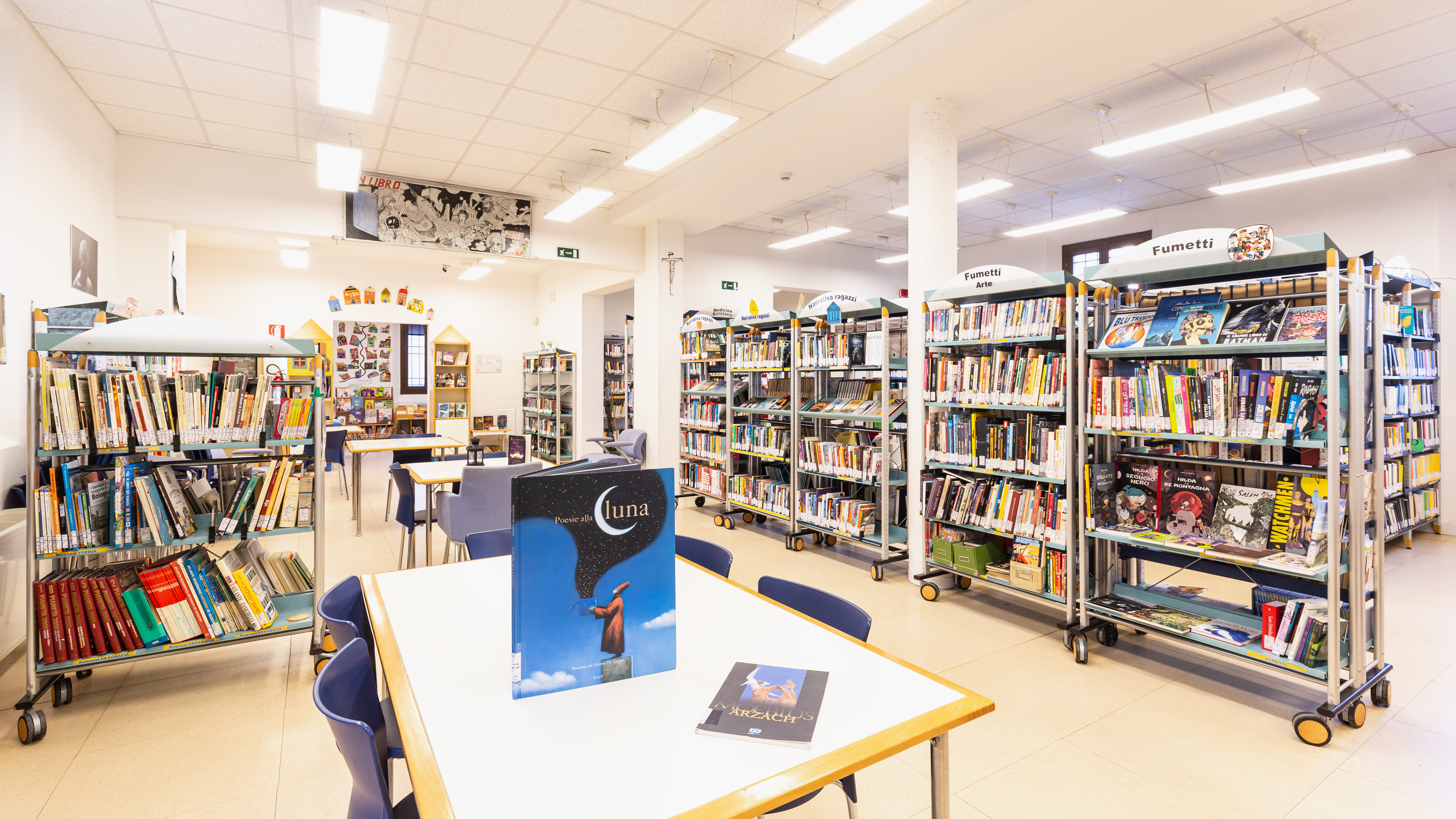 La biblioteca è situata nell edificio storico della Casa del Popolo, del 1907, dove al primo piano è presente il Teatro Comunale.